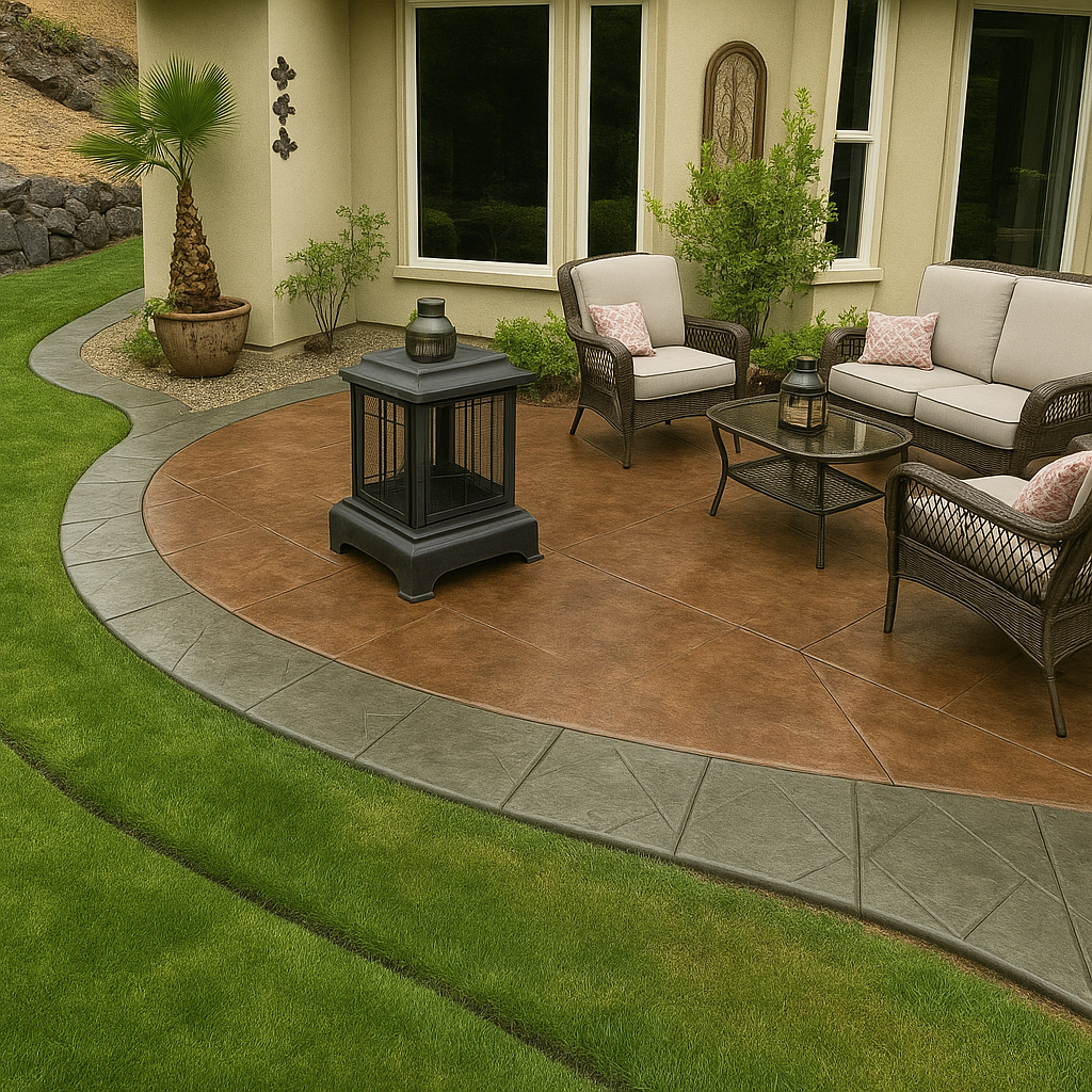 This process colors the concrete prior to sealing. This color lasts indefinitely as long as the concrete is kept sealed. Antiquing is a variation of shade colors, not one solid color like the concrete tint.